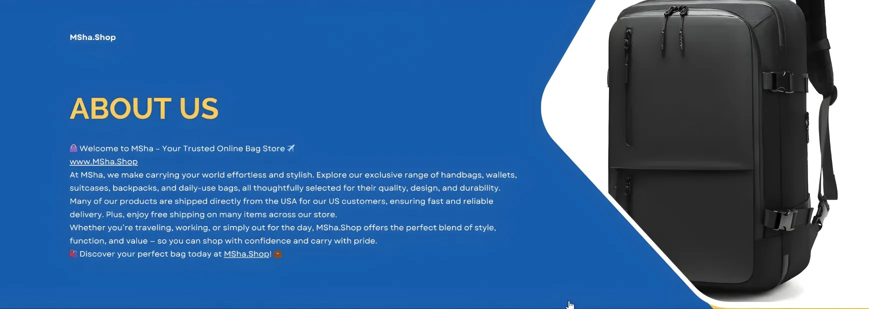 ## π Welcome to MSha β Your Ultimate Bag Destination πβοΈ **[www.MSha.Shop](http://www.MSha.Shop)** At **MSha**, weβre redefining how you carry your world. From elegant **handbags** to durable **suitcases**, stylish **wallets** to versatile **daily-use bags**, **[www.MSha.Shop](http://www.MSha.Shop)** is your exclusive online destination for **everything bags** β thoughtfully curated to blend style, quality, and everyday practicality. Whether you're heading to work, traveling the globe, or just stepping out for the day, we bring you collections that combine **fashion-forward design, functionality, and affordability** β all in one place. --- ### ποΈ Why Shop at MSha? * π **All About Bags:** 100% dedicated to handbags, wallets, suitcases, and more β itβs what we do best. * π **Premium & Practical Picks:** Discover luxury craftsmanship and value-driven options under one roof. * βοΈ **Travel-Ready Range:** Stylish yet sturdy suitcases and bags made for modern explorers. * π **Perfect for Gifting:** Handpicked combos and timeless designs, great for any occasion. * πΌ **Style Meets Function:** Every item is designed to complement your look and lifestyle. * π **Secure Checkout:** Enjoy peace of mind with protected payments and privacy. * π¦ **Fast Delivery:** Prompt shipping so youβre never left waiting. * π€ **Weβre Here for You:** Friendly and reliable customer service, always happy to help. --- ### π§³ Our Signature Collections 1. **π Handbags** β From trendy crossbodies to elegant evening bags, find your perfect carry. 2. **πΌ Wallets & Cardholders** β Sophisticated and practical designs for men and women alike. 3. **π§³ Suitcases & Travel Bags** β Travel in style with our range of lightweight and sturdy luggage. 4. **π Backpacks** β Perfect for work, school, or travel β designed for comfort and durability. 5. **π Shoulder & Sling Bags** β Fashionable and functional options for every outing. 6. **ποΈ Tote & Shopper Bags** β Spacious and trendy bags for everyday essentials. 7. **π Gift Sets** β Beautifully bundled items for those special moments. 8. **π New Arrivals** β Stay ahead with our latest drops and seasonal favorites. 9. **π₯ Best Sellers** β Customer favorites that combine form and function effortlessly. --- ### π Join the MSha Movement Thank you for visiting **[www.MSha.Shop](http://www.MSha.Shop)** β your **exclusive online destination for premium and everyday bags**. Whether youβre shopping for yourself or a loved one, we promise a smooth, stylish, and satisfying experience every time. Be sure to follow us on social media and subscribe to our newsletter for new arrivals, exclusive offers, and bag trends youβll love. π **Carry Confidence. Carry MSha.**
